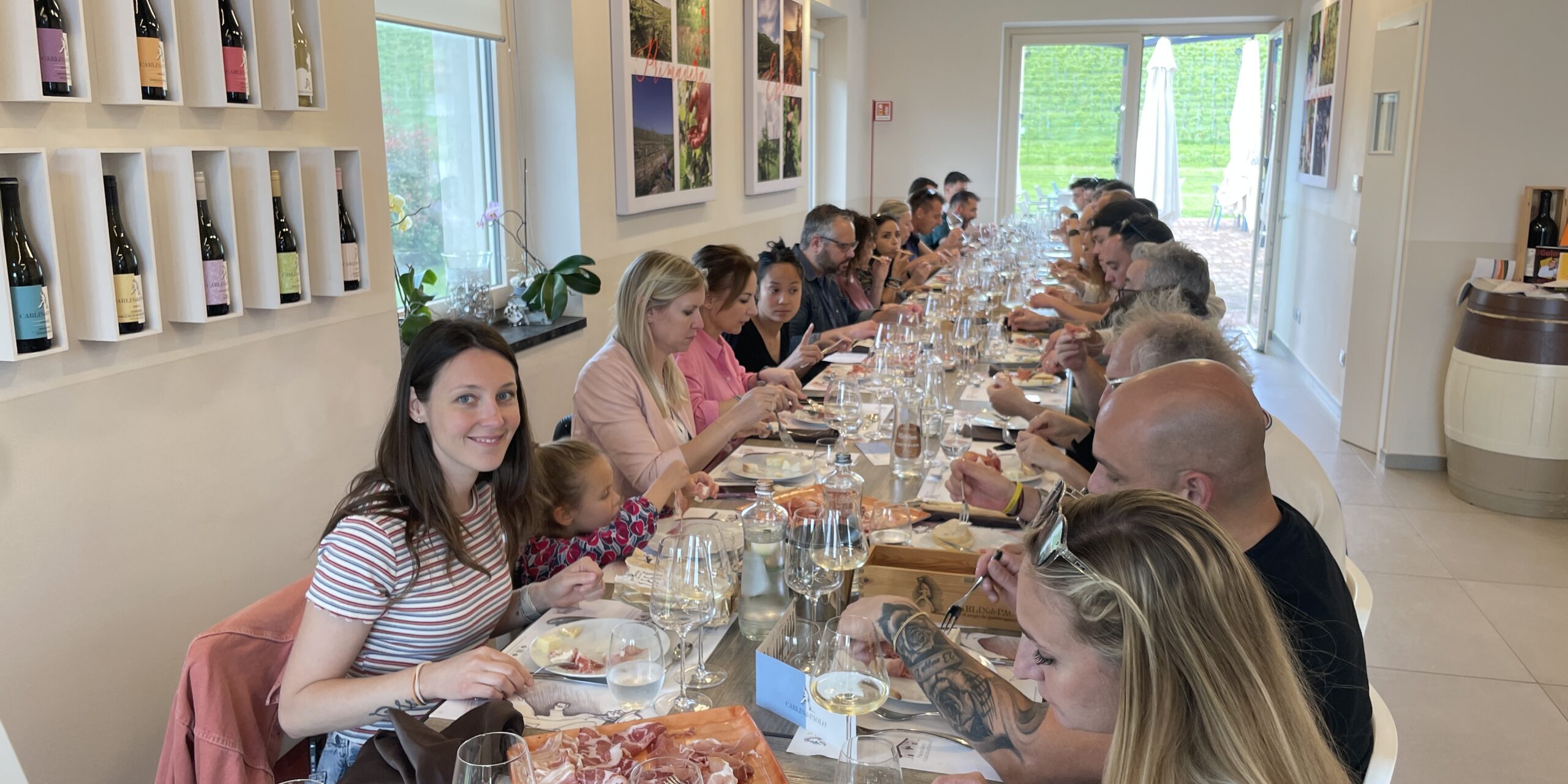 Dopo il tour, ci siamo riuniti per un aperitivo all’insegna della degustazione dei vini locali, accompagnati da deliziosi stuzzichini. È stato un momento di relax e socializzazione, perfetto per apprezzare la qualità dei prodotti offerti dalla cantina. La giornata è poi proseguita con un pranzo squisito, durante il quale abbiamo continuato a gustare i vini della cantina Carlin De Paolo, che hanno esaltato ogni portata con i loro sapori raffinati.